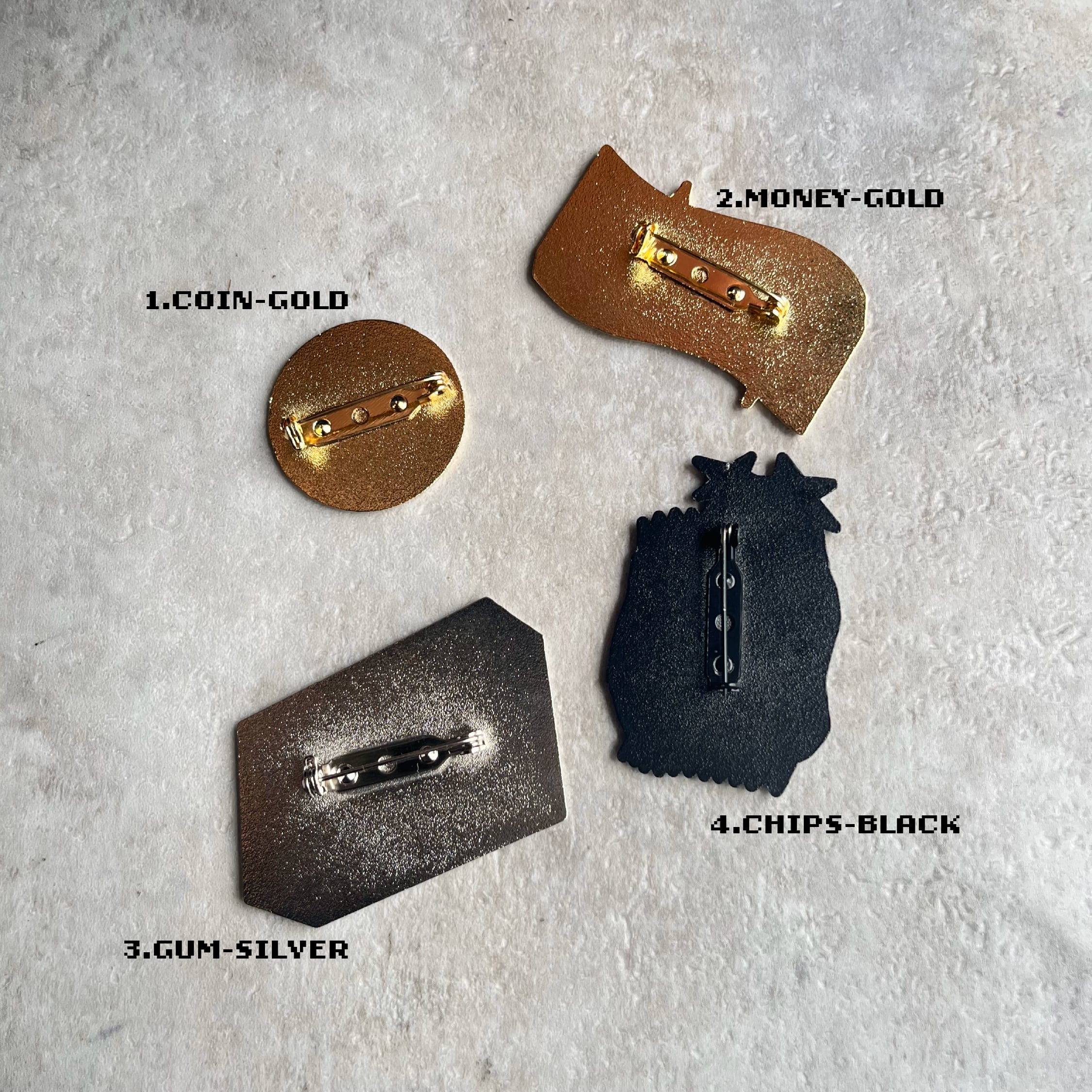 4.CHIPS -BLACK/約3×5cm ※セーフティピンが縦です