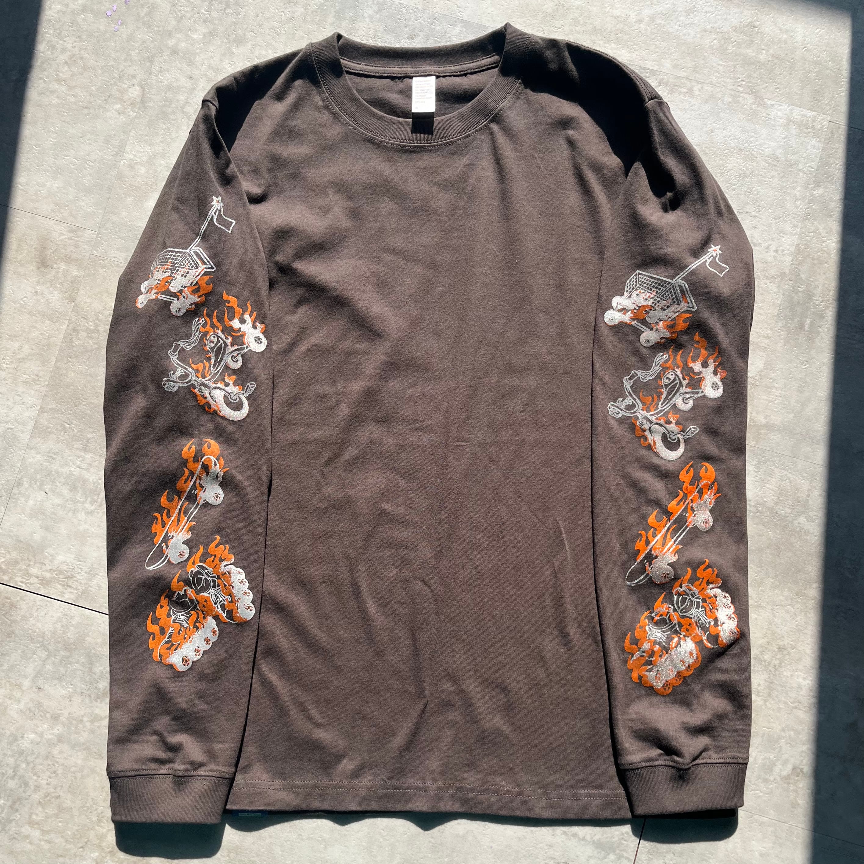 両袖には車輪が燃えたローラースケート/スケボー/三輪車/お子様専用カートのデザインをプリント